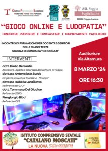 In programma, venerdΓ¬ 8 marzo, alle ore 16,30, presso il nostro Auditorium di via Altamura, il primo incontro di formazione per docenti e genitori degli studenti delle classi terze della Scuola secondaria βMOSCATIβ sul tema